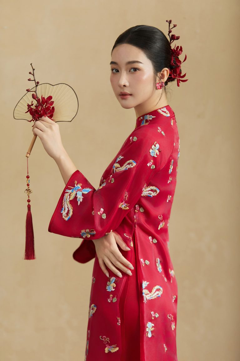 - Lớp ngoài: Tơ organza thêu